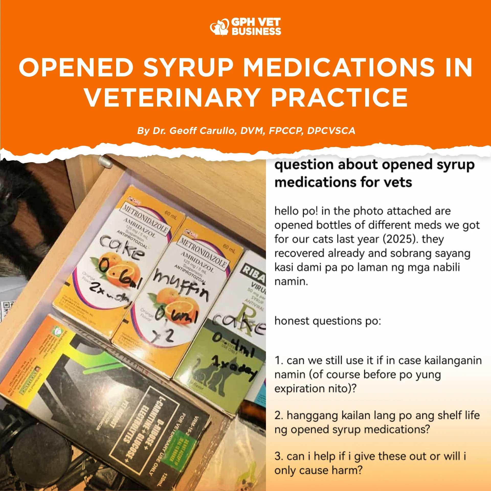 It’s a very common situation in clinics and households alike: a cat or dog recovers, treatment stops, and several bottles of liquid or syrup medications are left half-used. Sayang talaga. Naturally, the questions follow — pwede pa ba ito gamitin? hanggang kailan? at makakatulong ba kung ipamigay?