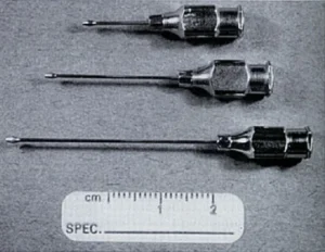 Figure: Minnesota Olive-Tip Urethral Catheters (22G) Image showing three sizes (0.5, 1.0, and 1.5 inch) of olive-tip urethral catheters designed for feline urethral catheterization and retrograde hydropulsion. The rounded, open-ended “olive tip” allows atraumatic passage through the urethra while facilitating flushing of urethral plugs or uroliths back into the bladder. Compared to traditional polypropylene “tomcat” catheters, these are associated with less urethral irritation and reduced risk of iatrogenic trauma, making them ideal for initial relief of urethral obstruction rather than indwelling use.