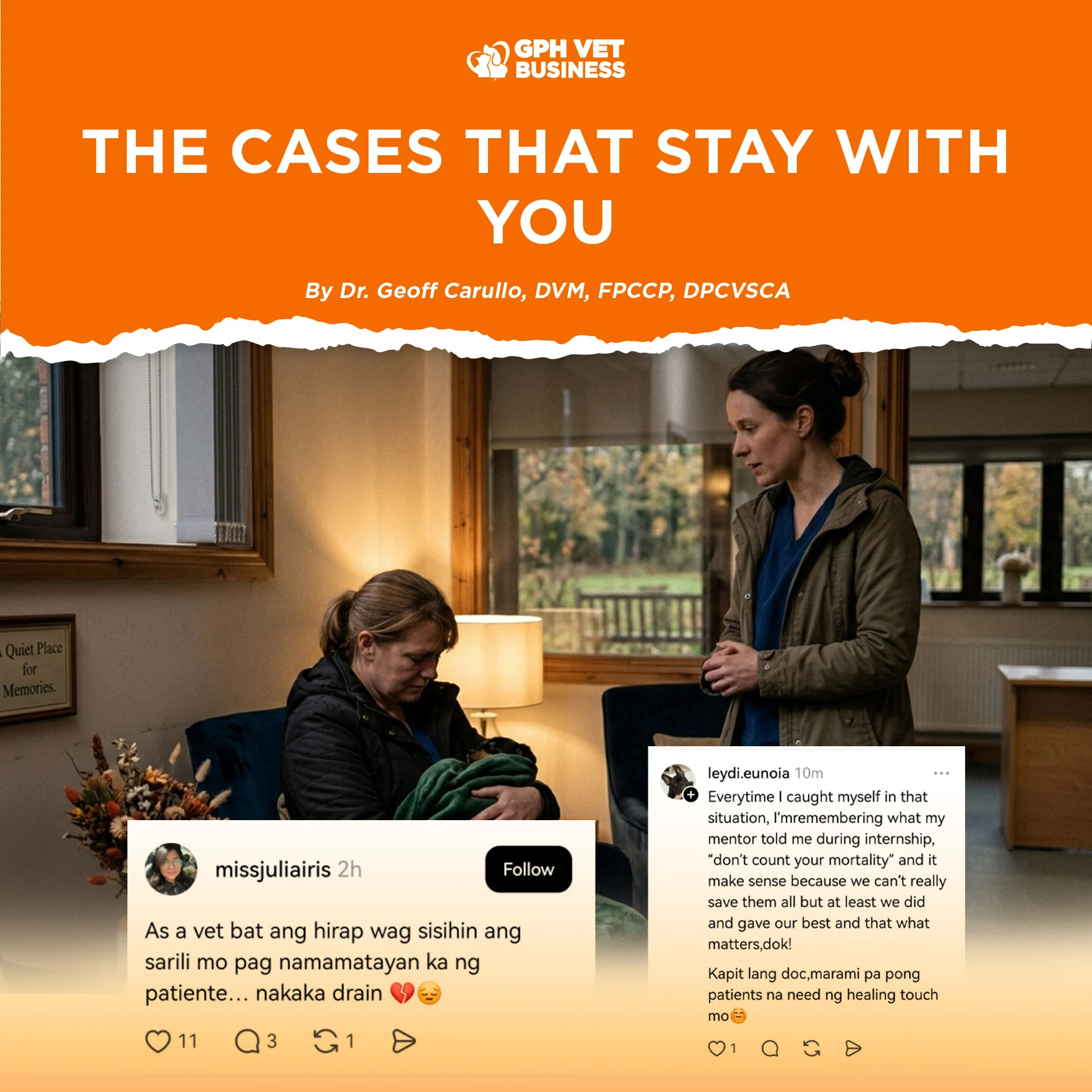 Veterinarians experience high levels of psychological distress, burnout, and self-blame, especially after patient loss.
